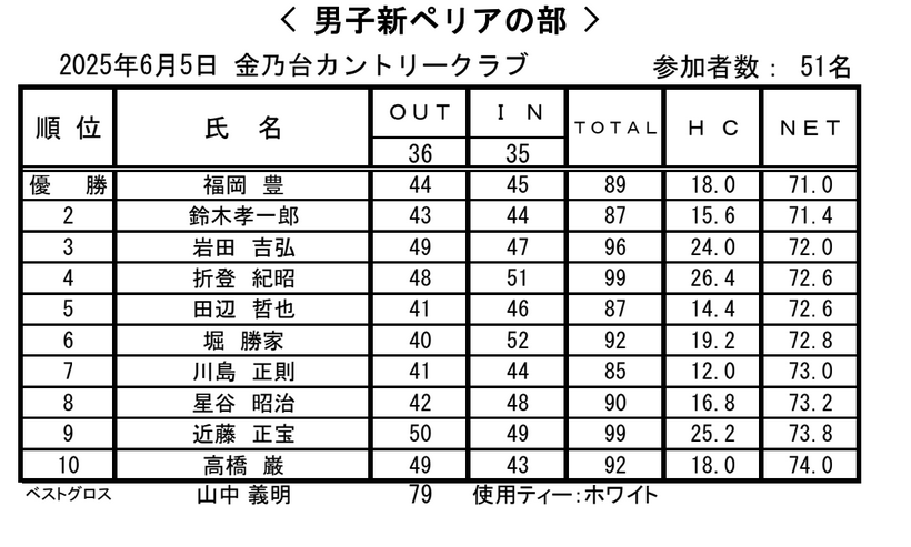 2025年 第1回墨東五区対抗ゴルフ大会 結果